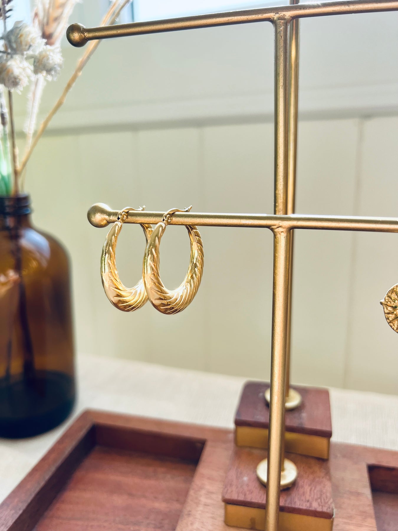 Les boucles d'oreilles Léna son fait d'acier inoxydable plaqué or .