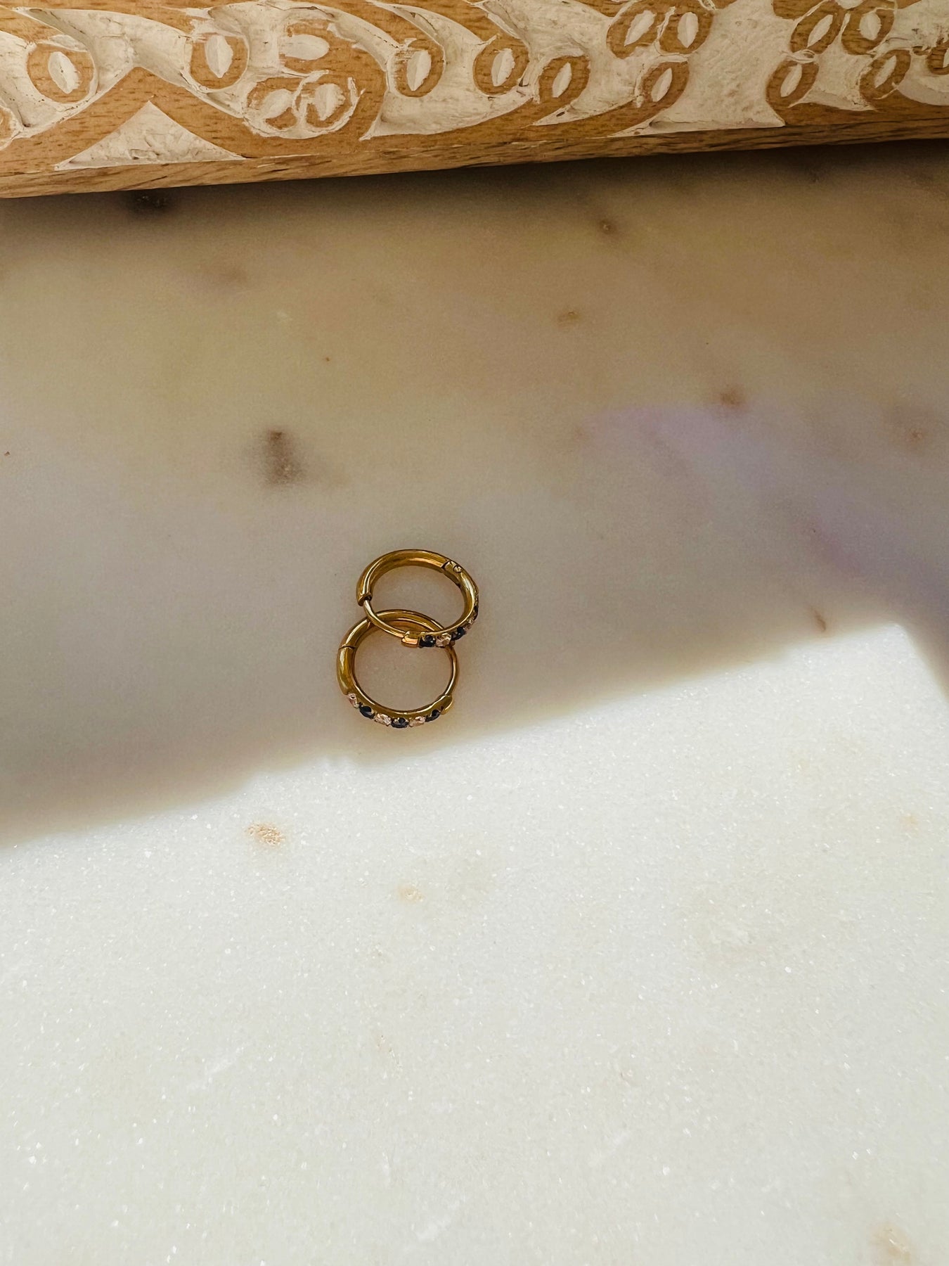 Les boucles d'oreilles Onyx son fait d'acier inoxydable plaqué or .
