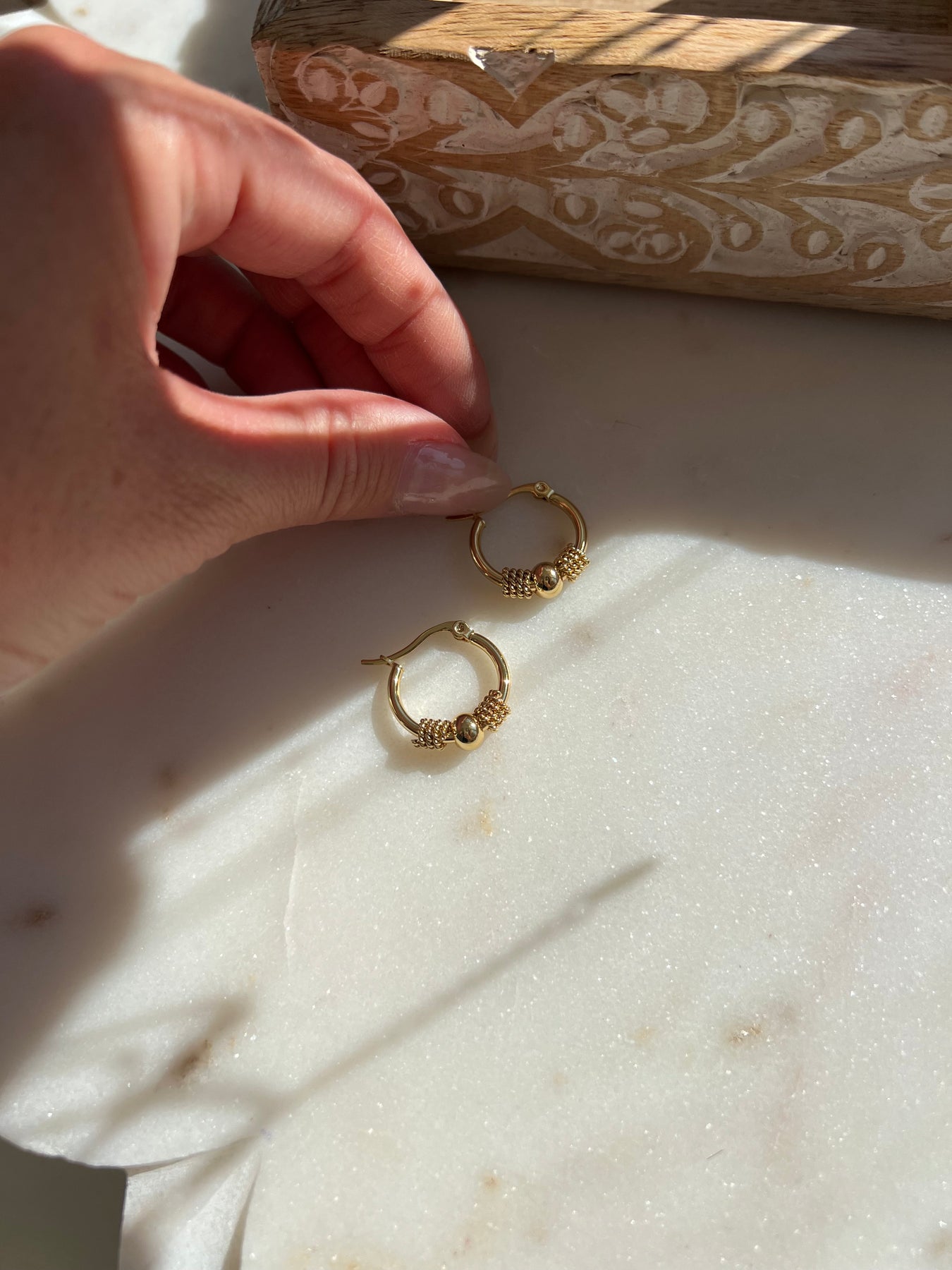 Les boucles d'oreilles Opale son fait d'acier inoxydable plaqué or .