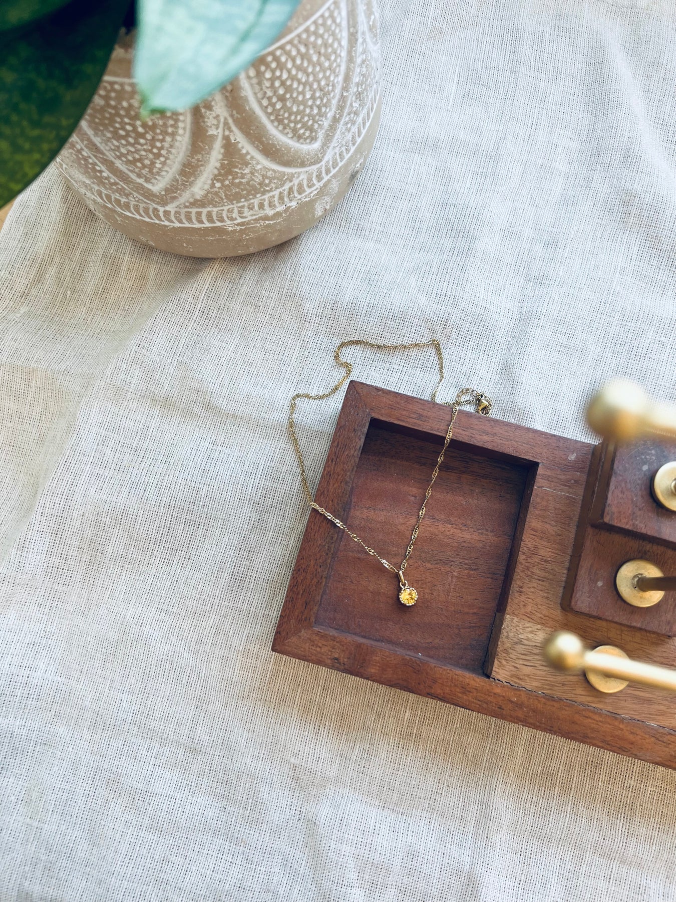 Le collier Ala est fait d'acier inoxydable plaqué or.